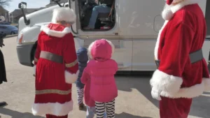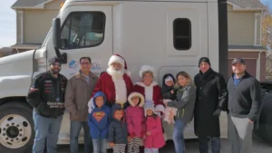 Santa and Mrs. Claus personally delivered the gifts to this family.  The 5 children, ages 2 through 9, watched through wide-eyes as the Clauses arrived in an InstiCo Express truck to hand out hugs and gifts.  As with every child, young or old, the children enjoyed climbing up into the driver’s seat of the InstiCo Express big rig and sounding the big rig horn.